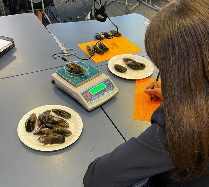 The students started by measuring the length, width and the weight of all their mussels and created a spreadsheet of their data.