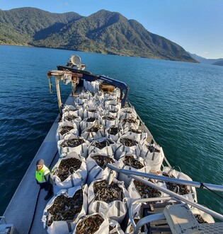 Our collective research over the last four years has explored the potential for restoration of mussel populations in Pelorus Sound/Te Hoiere and has produced promising results. These collaborative research efforts between the University of Auckland, the Marine Farming Association, Te Tau Ihu Iwi Fisheries Forum, NIWA, and the Nature Conservancy, have demonstrated that farmed mussels can effectively be used to restore mussel beds on soft sediment and in shallow intertidal zones.
